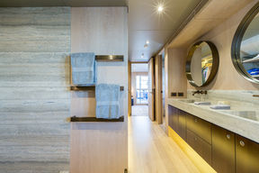 The warm colours of Australia accent an interior which is at once strikingly-modern, and invitingly-luxurious. A generous owner’s suite stretches full beam across the main deck, and four guest cabins complete the accommodation, with room for 10 live-aboard guests housed in vibrant, individual spaces. With an onboard private chef preparing a menu designed around your palate, and five additional crew to cater to your every need, AKIKO delivers an opportunity to revel in spending time with the ones you love most. Onboard tenders, jet skis, kayaks, stand up paddleboards, an onboard divemaster and scuba gear will all add to the experience.